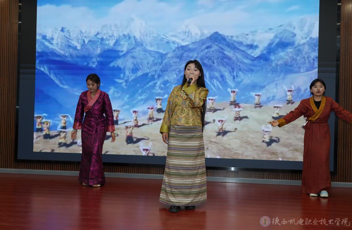 在精彩的民族歌舞表演环节,现场气氛达到高潮。同学们用优美的舞姿和动听的歌声,展现了藏族文化的独特魅力,赢得了在场人员的阵阵掌声。